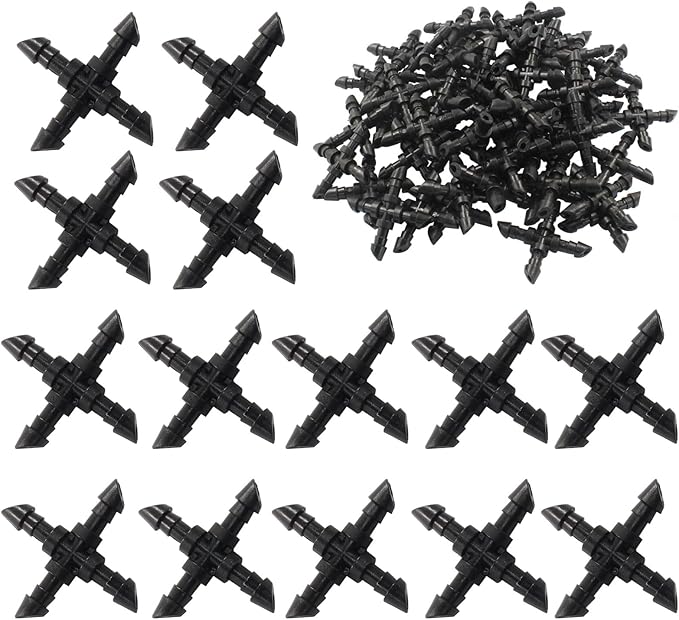 - Abundant Quantity and 90-Degree Cross Design: This package offers 50 high-quality barbed cross fittings, allowing you to connect four lengths of 1/4" drip tubing in a 90-degree 2-way shape. With this generous quantity, you'll have all the fittings you need for your irrigation system.