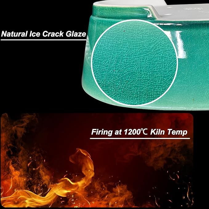 - 4, Feature: Ice Cracked Craft; Green Glazed Finish; 6 Holes at the bottom for Drainage and anchor wiring ; 0.8" Raised Feet allows more air to circulate at the bottom of the pot