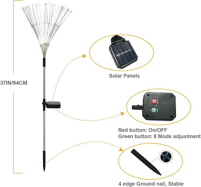 - 【Easy to install and versatile】No wires or other tools are needed to install this garden light,with the new four-pronged ground spike,the installation is more stable and sturdy. Simply install the solar decorative lights in your garden and turn on the switch, which emits beautiful and colorful light spots lifelike fireworks creating a romantic holiday atmosphere. Suitable for outdoor decorations in yards, flower beds, lawns and sidewalks as well as Christmas, weddings, parties and any other occasions.