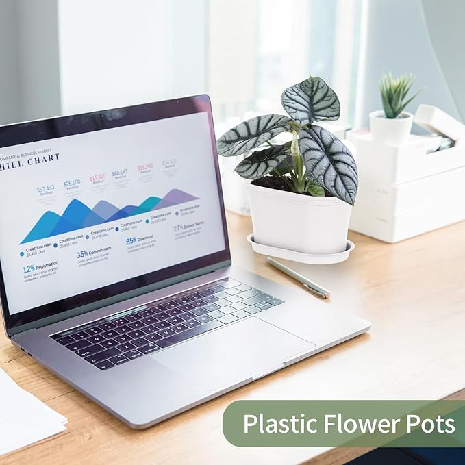 Windowsill Garden Pots, White Plastic Flower Pots with Drainage Tray for Herb, Succulents, African Violet (Pack of 6)