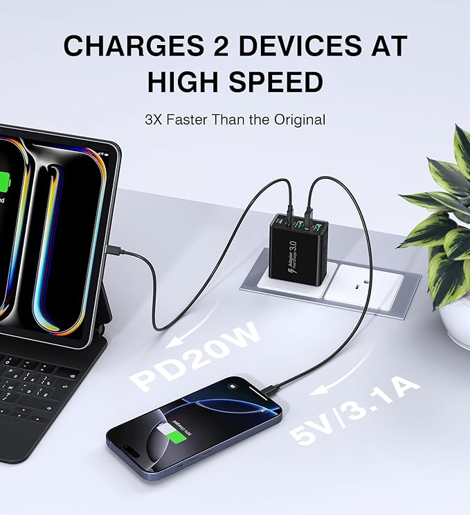 - USB Block Wide Compatibility:This type c wall charger is compatible with iPhone 16/16 Pro/16 Pro Max/16 Plus, iPhone 15/15 Pro/15 Pro Max/14/13/12/11/SE3/XR/XS Max/X/8 Plus, iPad Air/Pro/Mini, AirPods Pro, Samsung Galaxy S23/S22/S21/ S20 Ultra/S10/S9/S8 Plus, Tablet, LG, Motorola, PC Tablet, Google Nexus Tablet, Samsung Galaxy Tab AirPods 4,Apple Watch 10,Ultra 2 and other digital devices