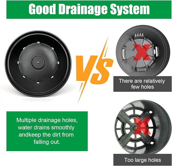 - Drainage Holes:Each pot has drainage holes to prevent water buildup that could cause root rot;helps maintain proper moisture levels for plant health