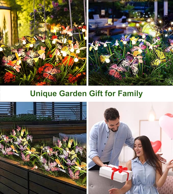 - The perfect gift for garden lovers: The exquisite design and practical functions make this solar butterfly light a thoughtful gift for birthdays, housewarming, festivals and other occasions. It is absolutely a surprise for friends who love nature and gardening!