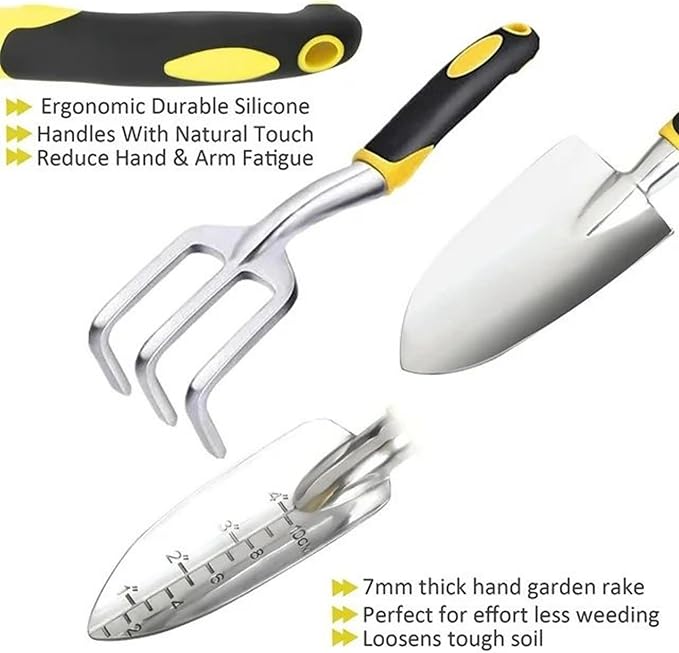 - 【Ergonomic Design】Each gardening tool features ergonomic, non-slip handles that are comfortable to hold and reduce strain on the wrists and arms during use.The handles include practical hanging holes for easy storage and organization.