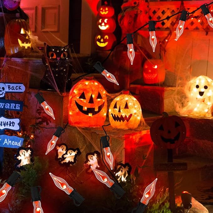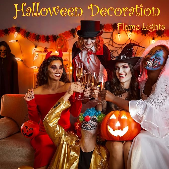 - 🔥【Surprising Christmas Decoration Lights】: Our Flickering Flame Christmas String Lights are perfect for indoor and outdoor decorations, the flickering flame flickers brightly in the dark night, the black vintage wires can be well hidden, suitable for use as Christmas Tree Lights, Fireplace Decorative Lights, Party Lights, Haunted House Decorations, Patio Lights, Garden Lights and so on. Let everyone immerse in the scary and fun atmosphere of Christmas together.