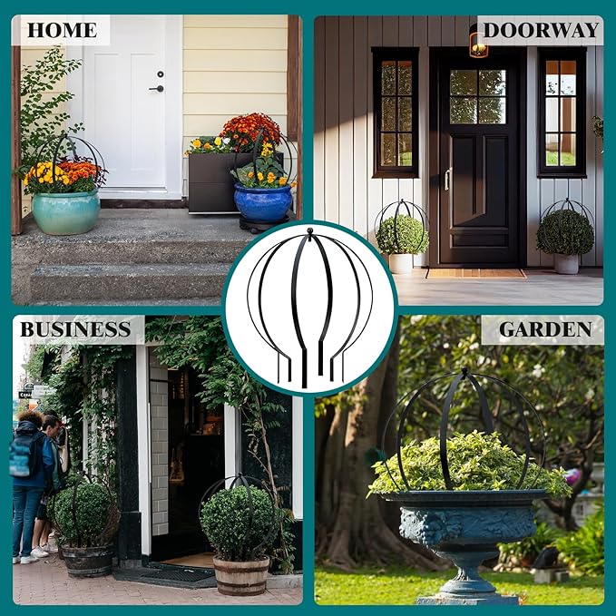 - Easy set up: Our ornamental globe trellis for potted plants features a durable architectural circular shape, with 6 stakes for stability and longevity. Simple to install, it brings immediate elegance to your outdoor area, serving as an ideal support for outdoor climbing plants, indoor plant trellises, and potted plants