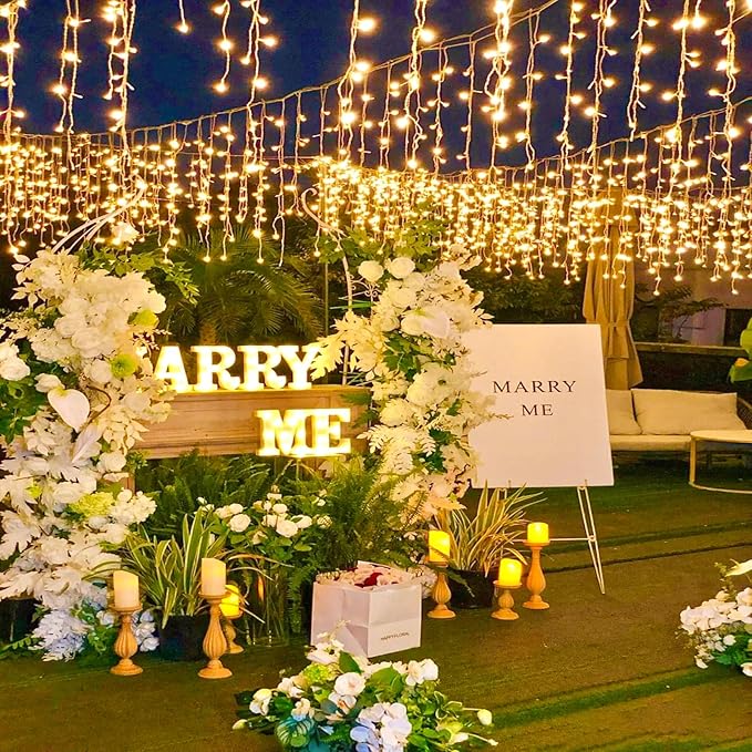 - Timer Function - Long press the button on the adaptor for 3 seconds to activate the timer, 6 hours turn on and 18 hours off, freeing up your hands. These icicle lights indoor can be easily draped or hung on the outdoor roofs, yards, window, patio, garden, fence or indoor bedroom, creating a dreamy and romantic atmosphere.