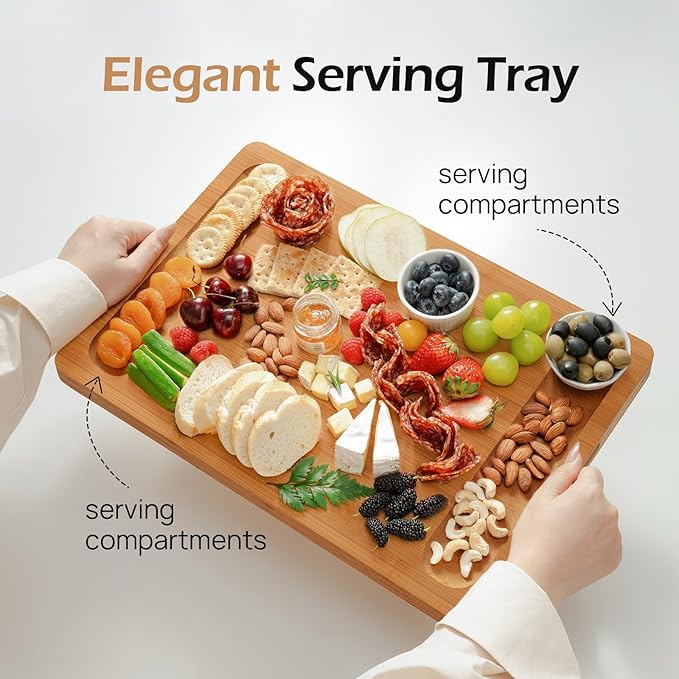 - ๐๐ง๐ฌ๐ข๐๐ ๐๐๐ง๐๐ฅ๐๐ฌ - Our cutting boards come with built-in handles for easy maneuvering, making it simple to transfer ingredients from your kitchen to the stove or use as a serving tray, you wonโt have to worry about having butter fingers & dropping your food. Whether you're preparing food or serving guests, Keecheeโs thoughtful design ensures hassle-free handling.
