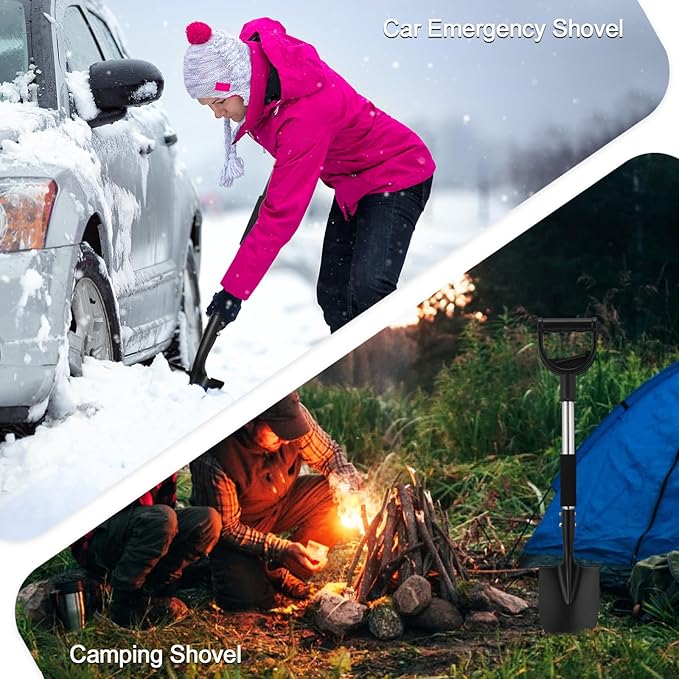 - Portable: Easy to assemble in less than a minute. Can be disassembled to put in a backpack or car trunk, or mounted on a truck for use while camping for emergencies. It is not only a garden shovel, beach shovel, but also a camping shovel and car emergency shovel.