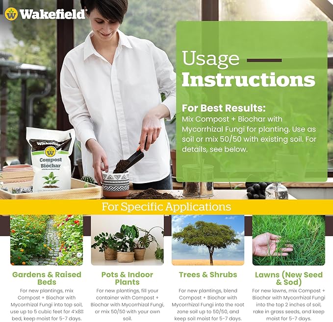 - GROW BETTER, HEALTHIER PLANTS – Wakefield Biochar helps soil get the right balance of water and nutrients, so potting soil, compost, fertilizers, soil amendments and soil conditioners work better with less