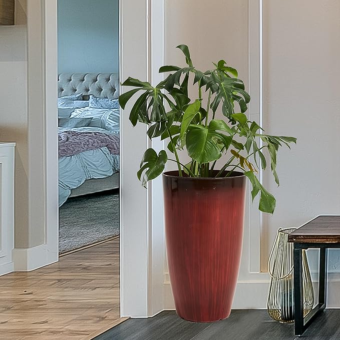 Worth Garden 23.5" H. Large Plastic Planters - Set of 2 Gradient Red Glossy Smooth Finish - Tall Plant Pots for Indoor & Outdoor Use - Decorative Lightweight Flower Pots for Front Porch, Patio, Deck