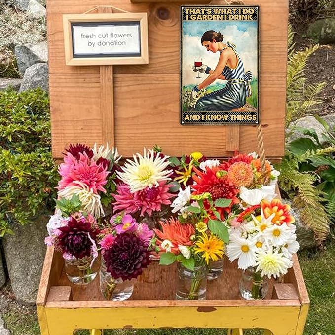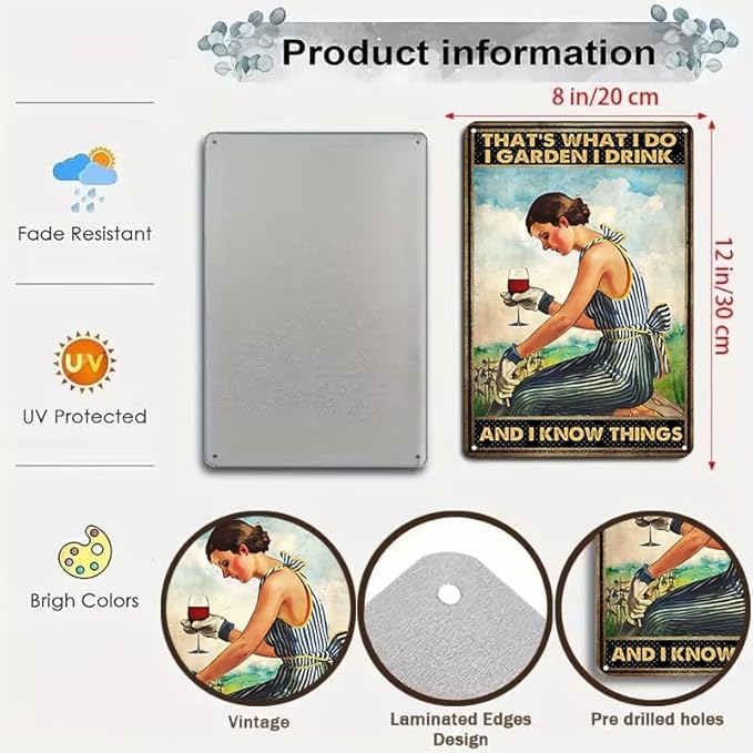 - Charming Vintage Design: Featuring a nostalgic "That's What I Do, I Garden" slogan, this vintage tin sign adds a charming and whimsical touch to any space.