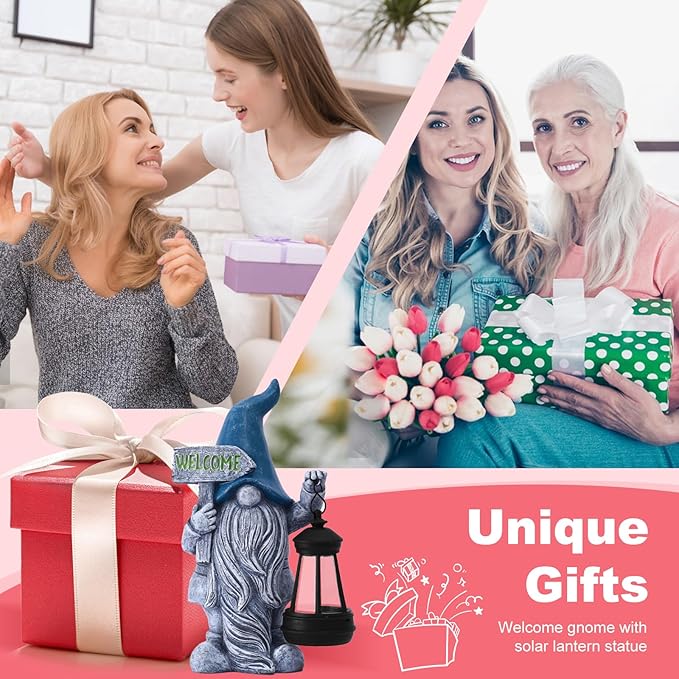 Welcome Gnomes with Solar Lantern - Garden Gnomes with Solar Lights, for Mom or Women, Housewarming Gnome Decorations