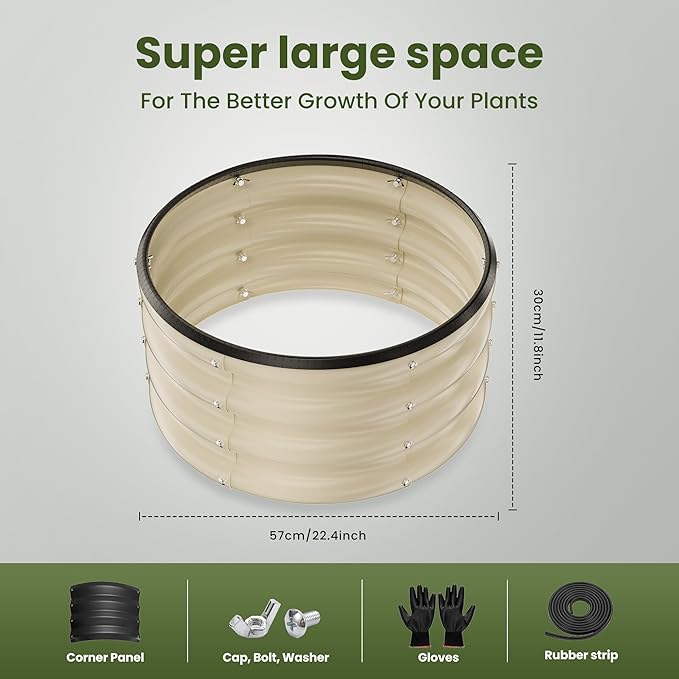 - 【Enhance Garden Aesthetics】 The stable and beautiful design of the round galvanized raised garden bed will enhance the appearance of any garden. For any questions or concerns, please don't hesitate to contact us through Amazon.