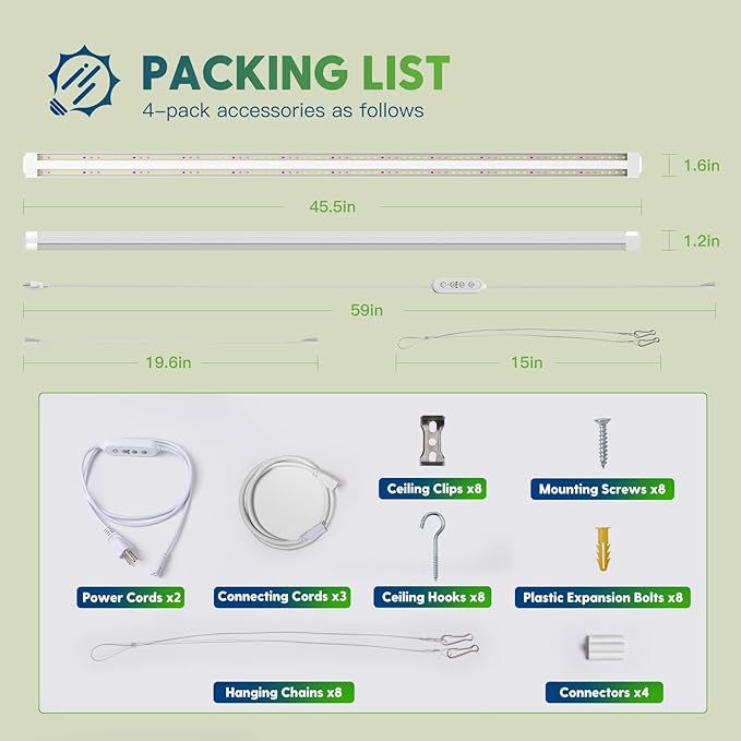 - Linkable Use: 4FT LED grow lights seamlessly connect up to 4 lights with the user-friendly on/off power cords (59 inch), ensuring comprehensive & uniform lighting coverage for your indoor plants