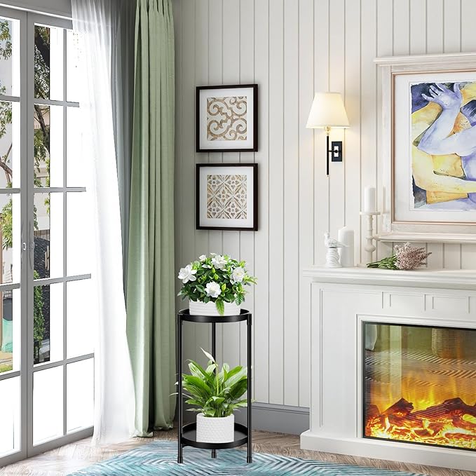 - Space-Saving Solution : With dimensions of 9.6" D x 9.6" W x 23.8" H, the metal plant stands' double-layer design optimizes space, ensuring ample sunlight for each plant. It's an ideal selection for crafting a vibrant oasis in limited spaces.