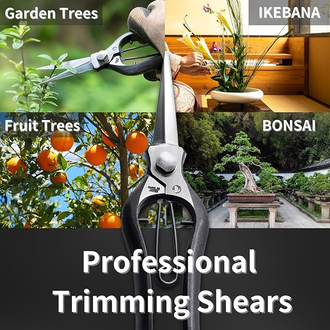 - [All-Purpose Japanese Garden Shears] These traditional Japanese gardening shears are versatile and can be used for trimming garden trees, fruit trees, flower arrangements, Ikebana, bonsai, and many other gardening purposes.