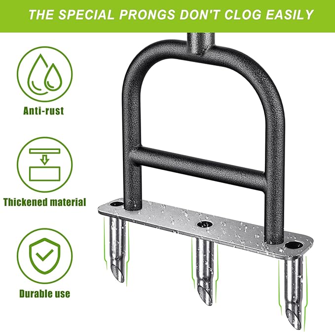 - 3 Stainless Steel Coring Plugs: Our 3 core aerator plugs uses stainless steel material that will not rust or bend out of shape. Additionally, our rod is made from high-quality solid steel with a black powder coating on the surface to ensure long-term use of the tool.