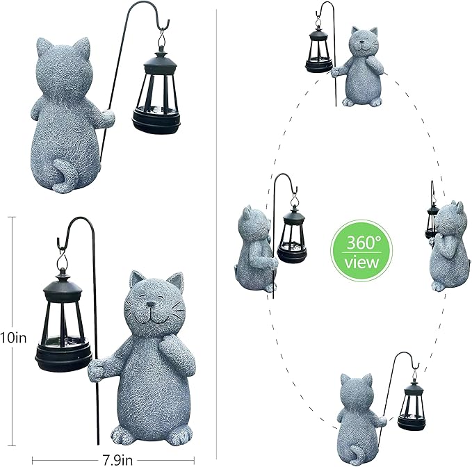 - 【The Best Choice for Home Garden Decoration Gifts】This solar powered statue cat is not only a great gift for various occasions, such as birthday, Christmas, Mother's Day, or Father's Day, but also a perfect choice for occasions such as Easter, Thanksgiving, weddings, Valentine's Day, New Year, and graduation ceremonies. It is a warm and perfect choice.. It can even be given to cat enthusiasts, animal enthusiasts, your friends and family.