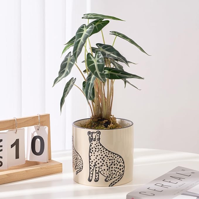 - Modern Small Plant Pots: Ceramic Pots for Plants is designed with cute panther and special flowers pattern that adds a lively and modern feel, the Small Pots for Plants can bringing a stylish visual presentation to your home/office decor.