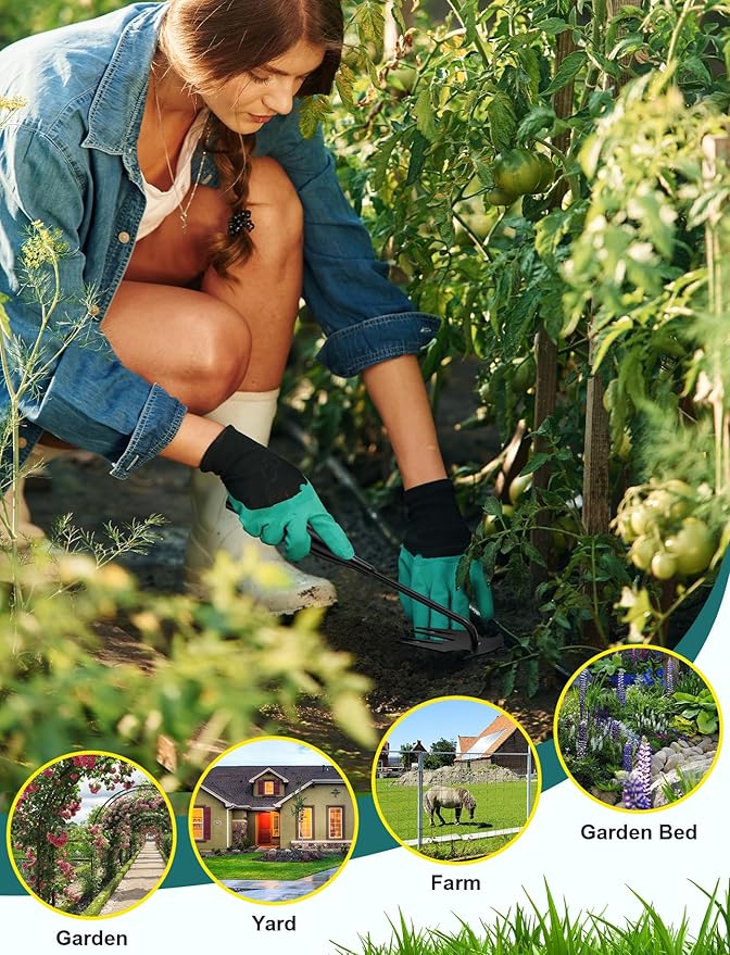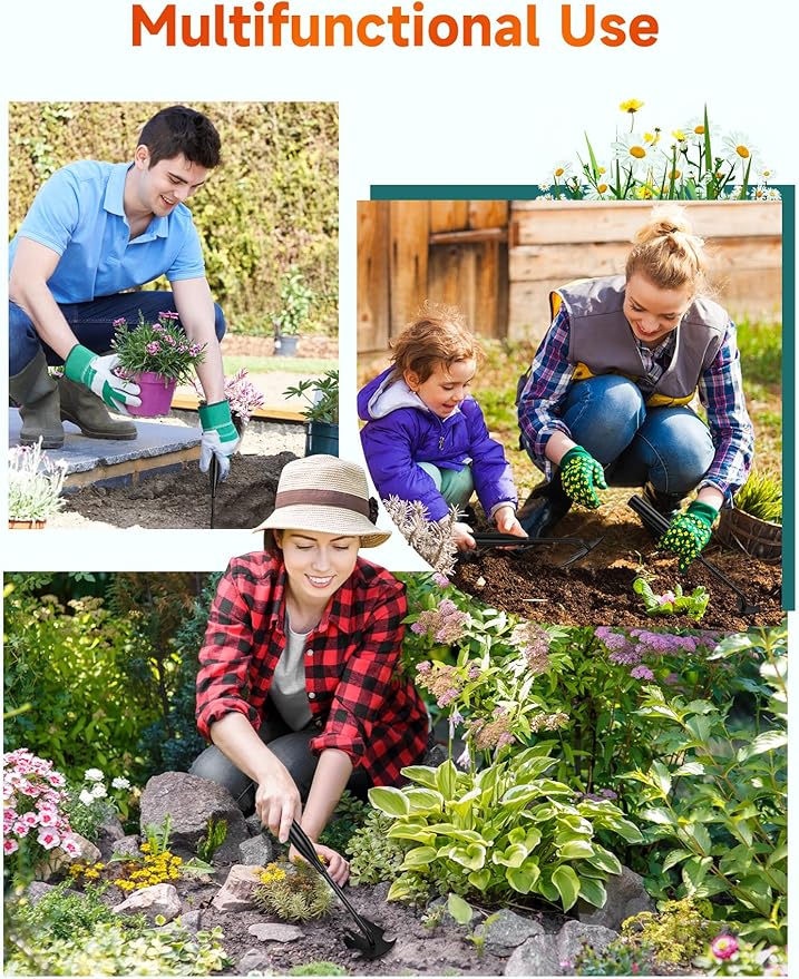 - 【4-Tine Dual-Purpose Weeder】 The gardening hand tools is very simple to use. When pulling weeds, insert the 4 tines into the soil, the root of the grass should be as close to the bottom of the groove as possible to facilitate the removal of weeds in corners and narrow spaces. At the same time, the 4-tine weeding tools gardening also loosens the soil surface. Hand weed tools are lightweight and portable and will not weigh down your tools.