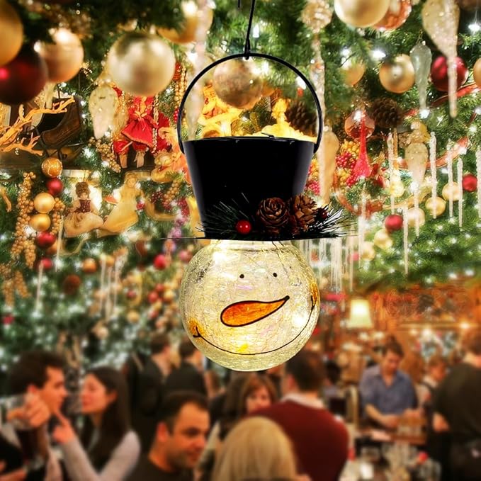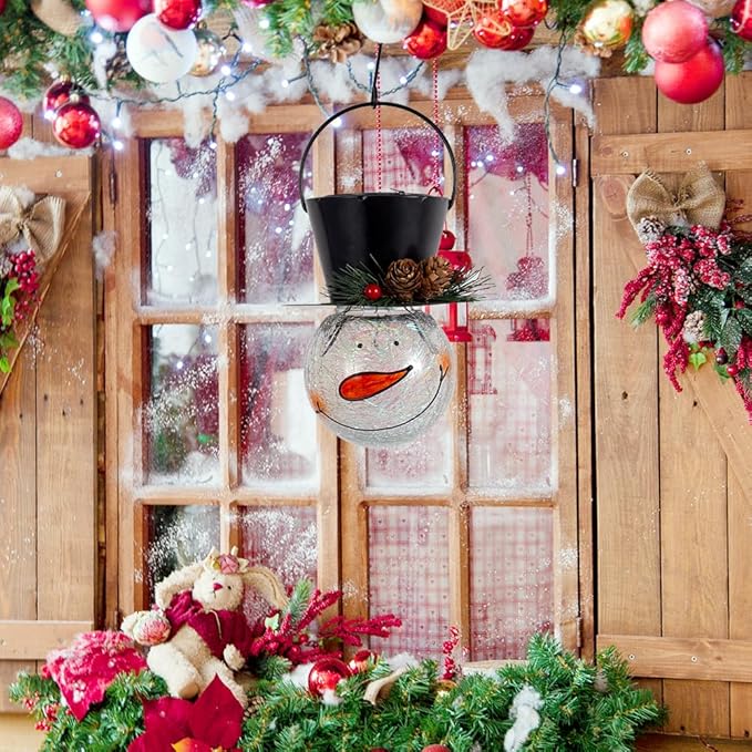 - 【All Weather Resistance】IP65 waterproof, the snowman solar christmas lantern outdoor can work normally in most weather such as rain, wind, snow, and even the worst weather conditions. This solar hanging christmas decorations are very suitable for decorating dining room, yard, fireplaces, kitchens, outdoor patio, lawn, garden, Christmas, party, or window sills decoration Lighting.