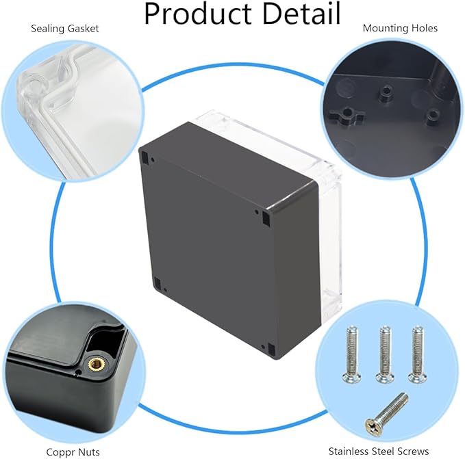 - 【Clear Cover Black Waterproof Box】– The Upgraded version is made of PC, ABS, Transparent cover outdoor waterproof box offers visual inspection of the internal projects, Easily grasp the working status of the project.