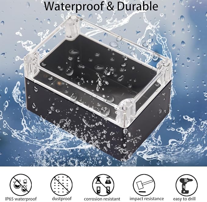 - 【Clear Cover Black Waterproof Box】– The Upgraded version is made of PC, ABS, Transparent cover outdoor waterproof box offers visual inspection of the internal projects, Easily grasp the working status of the project.