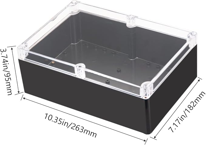 - 【Size】- Outer size of the project box: 10.35"x7.17"x3.74 "(263x182x95 mm); Inner size of the project box:10.04"x6.89"x3.43 "(255x175x86 mm)