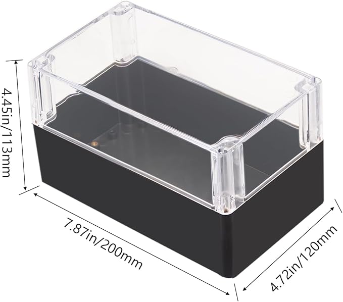 Project Box IP65 Waterproof Junction Box ABS Plastic Black Electrical Boxes DIY Electronic Project Case Power Enclosure Clear Cover 7.87"x4.72"x4.45"