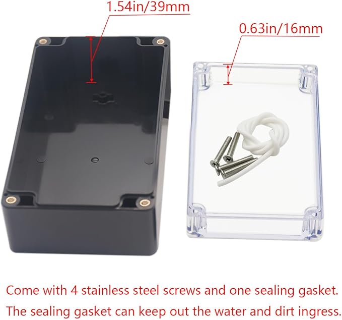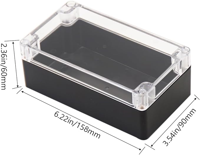- 【Size】- Outer size of the project box: 6.22"x3.54"x2.36"(158 x 90 x60 mm); Inner size of the project box:5.94" x3.27" x 2.17" (151 x83 x55mm)