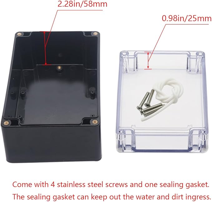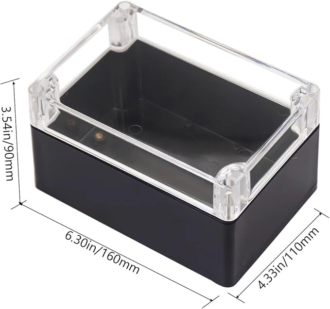 - 【Size】- Outer size of the project box: 6.3"x 4.33"x3.54"(160 x 110 x90 mm); Inner size of the project box:5.98" x4.02" x 3.27" (152 x102 x83mm)
