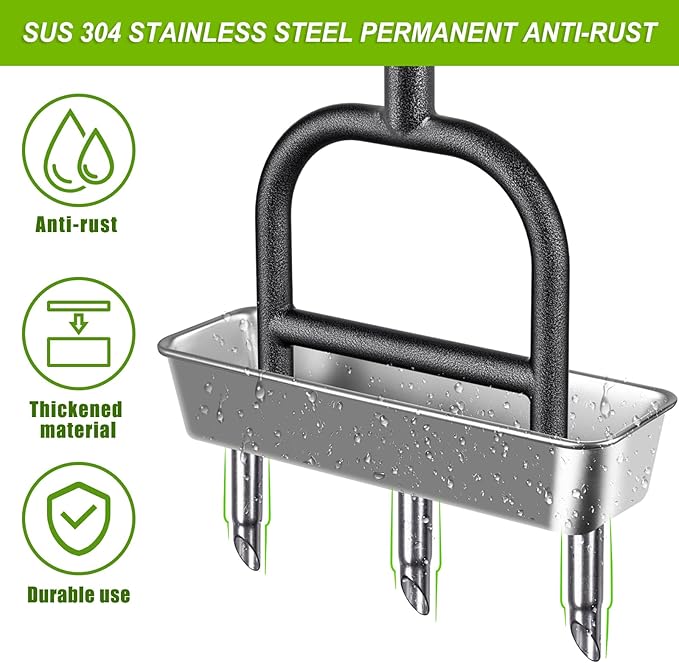 - Stainless Steel Coring Plugs: Our 3 core aerator plugs uses sus 304 stainless steel material that will not rust or bend out of shape. Additionally, our rod is made from high-quality solid steel with a black powder coating on the surface to ensure long-term use of the tool.