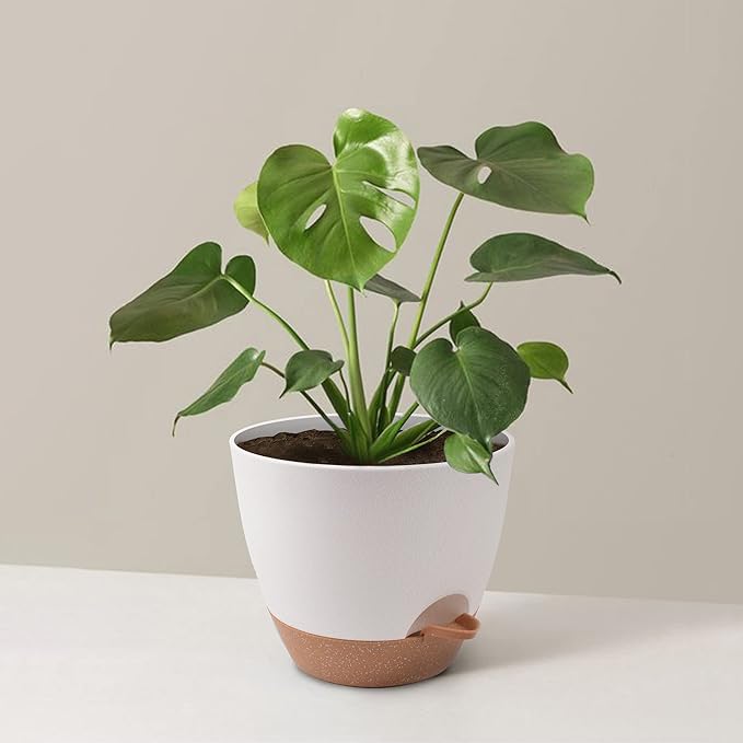 • SELF-WATERING RESERVOIR – HASSLE-FREE PLANT CARE: Designed with a deep self-watering reservoir, these planters provide up to two weeks of consistent hydration, making them ideal for frequent travelers or those with a busy schedule. Enjoy peace of mind knowing your plants stay hydrated even when you're away.