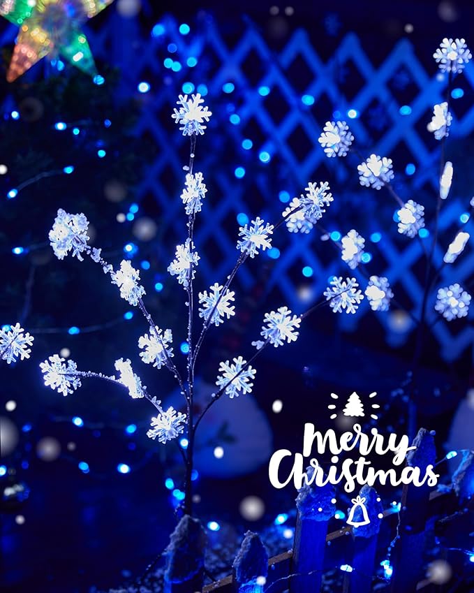 - Customizable Display: The snowflake lights outdoor are easy to install. Just straighten the bent stakes and plug them into the ground. Adjustable branches allow you to shape and arrange the trees according to your preferred style and space