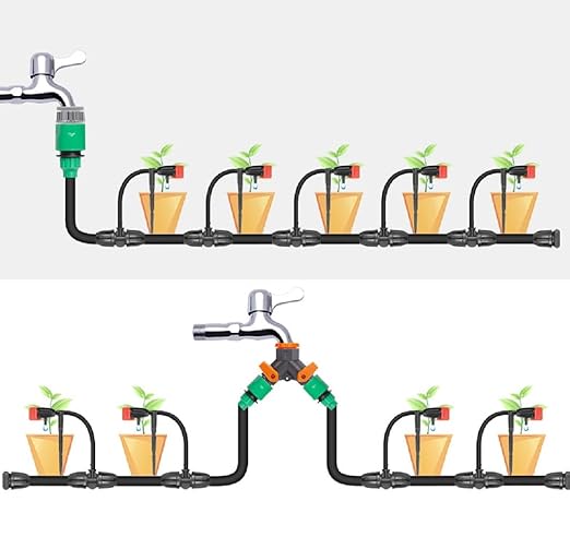 - Drip Emitters Material: Made of high quality plastic.Double-ended design. Water pipes can be connected to both sides of the dripper .easily solve the problem of garden irrigation and water shortage at the end of irrigation.
