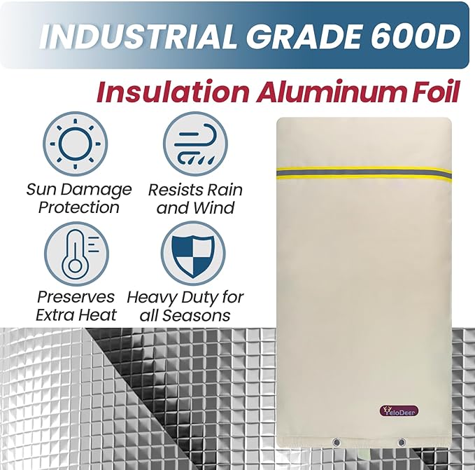 Backflow Preventer Insulation Cover, 14" W x 26" H YeloDeer Reusable Waterproof Sprinkler Valve Cover with Aluminum Foil, Outdoor Well Pump Cover Insulated for Winter Freeze Protection.