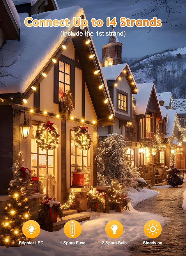 - Special Feature : UL Certified LED C9 String Lights, Waterproof, Connectable, Christmas Tree Decorations