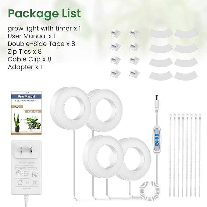 - Full Spectrum Grow Light: Compared with other small grow light, our grow light is equipped with full-spectrum high-efficiency LED diodes (including 3000K warm white, 6000K cold white, 660nm red light), infinitely close to natural light, suitable for every cycle of plant growth. NOTE: The timer cannot be used with an outlet timer.