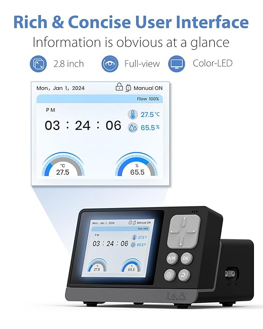 J&A Automatic Watering System for Potted Plants Drip Irrigation Kit Self-Watering System with Timer, Thermometer, Hygrometer for Indoor Plants, Grow Tent (Black)