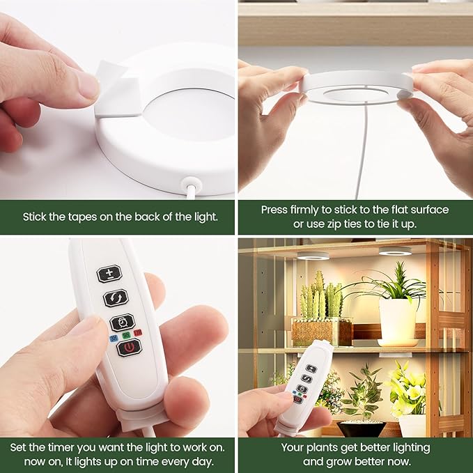 - Easy Installation with total Mounting Kits for Plant Shelf or Under Cabinet - Mosthink grow light set comes with 6 double-sided tapes and 4 ties. Fits for various surfaces . The power cord is 72 inches long for easy using in office,home,plant shelves or indoor greenhouse