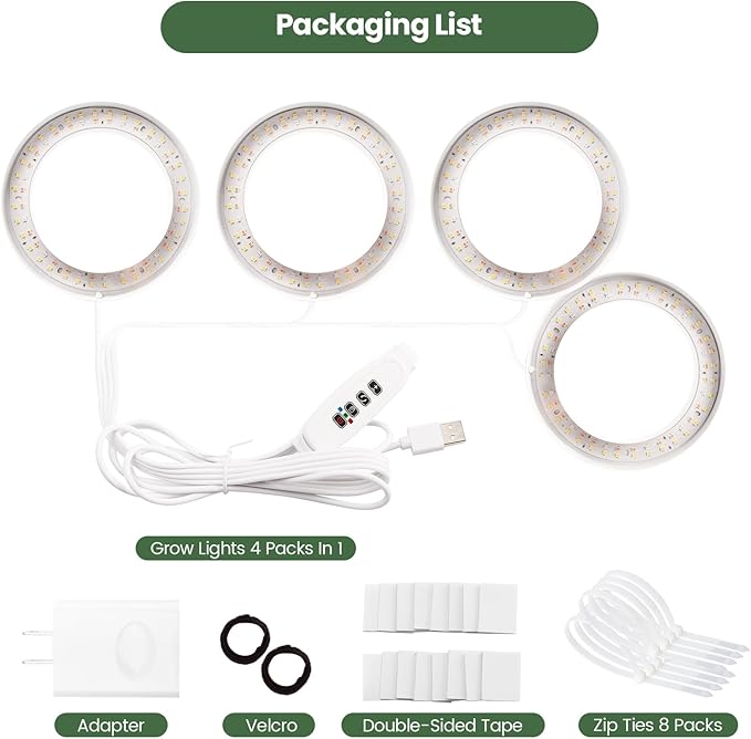 - Easy Installation with total Mounting Kits for Plant Shelf or Under Cabinet - Mosthink grow light set comes with 12 double-sided tapes and 8 ties. Fits for various surfaces . The power cord is 72 inches long for easy using in office,home,plant shelves or indoor greenhouse