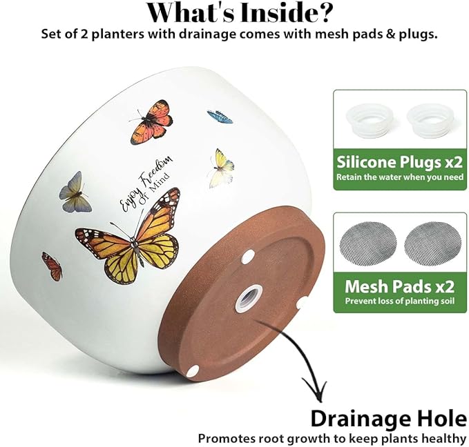 - Drainage Hole & Plug & Mesh Pad - Each planter has a drainage hole, putting the mesh pad at the bottom will isolate the water. The silicone plug could retain the water. (Plants are NOT included.)
