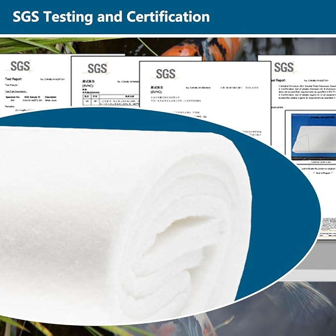 - 🐟Arbitrary cutting: Our pond filter pad can be easily cut to any size you need, saving more money; suitable for all sizes of filtration systems, such as koi pond filters, waterfall filtration, pond skimmer box, etc. 【The item is shipped in compressed packaging, the thickness will be thinner, after unpacking and leaving it for a period of time, the fiber will return to its original thickness.】