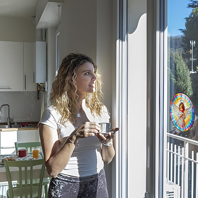 - 【stained Glass Window Hanging】This is a very beautiful praying angel decor suncatcher with a size of 6x6 inches which is perfect for windows, adding a touch of color without obstructing the view outside. This piece of glass was cut individually and painted by hand. It is skillfully handmade, and it is real glass, NOT plastic or acrylic.