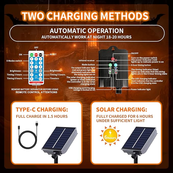 - Easy to Install & Auto ON/OFF: These outdoor solar lights are easy to install, no screws are needed, simply connect the stake and install them into the ground and turn the switch ON. They will auto turn on at night and turn off to be charged during the day. It only needs 4~6 hours to be fully charged and can last for 10~12 hours working time. Boldly decorate your garden with solar lights, and enjoy the spooky glow created by these Christmas lights with your families and friends on Christmas.