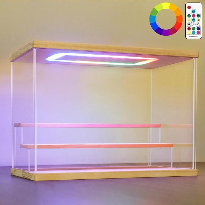 - 【Upgraded remote control 】Our exclusively designed remote control can easy to control the light mode while you're sitting on the sofa or the bed. The clear display case is suitable for desk, office table, dresser, bedside table to display and organize figurines, dolls, collectibles, glassware and and any other knickknacks.