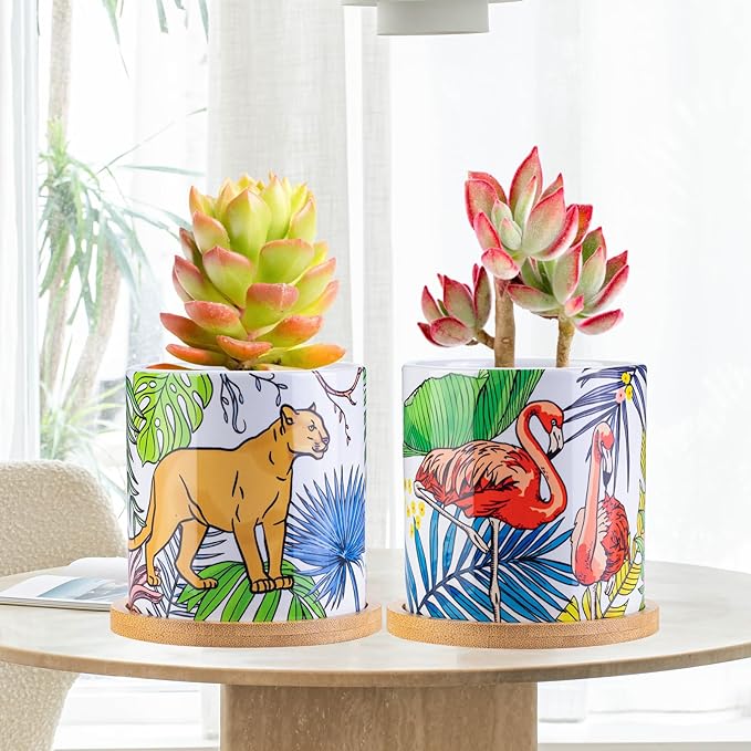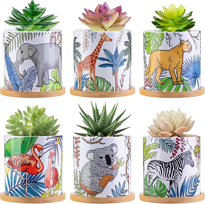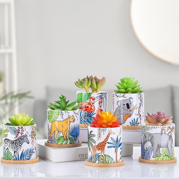 - Animal pattern design: The flowerpot adopts wild animal patterns, with 6 different bright and eye-catching pattern designs. These 6 flower pots, whether placed together or separately, can bring you a refreshing feeling.