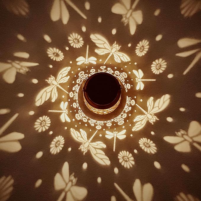- Graceful Decorative Design - The retro appearance, with gold copper color and hollow out metal veneer, the solar outdoor lanterns casts bright and warm light in darkness, accompanied by gorgeous and graceful dragonfly patterns, adding a beautiful atmosphere to the surrounding environment.