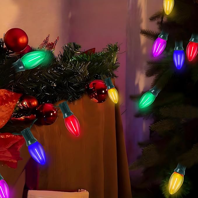 - Indoor & Outdoor Use: UL-certified for safety, multicolor c7 led christmas lights outdoor are designed to shine brightly both indoors and outdoors. colorful led christmas string lights are dimmable, dimmers are required for dimming (NOT Included dimmer)Use them to light up Christmas trees, patios, porches, or holiday parties.